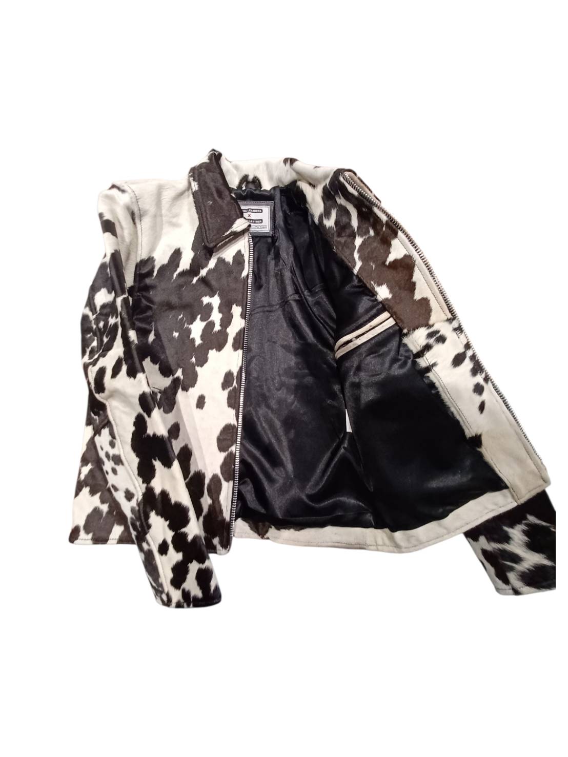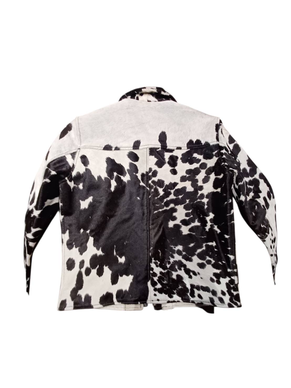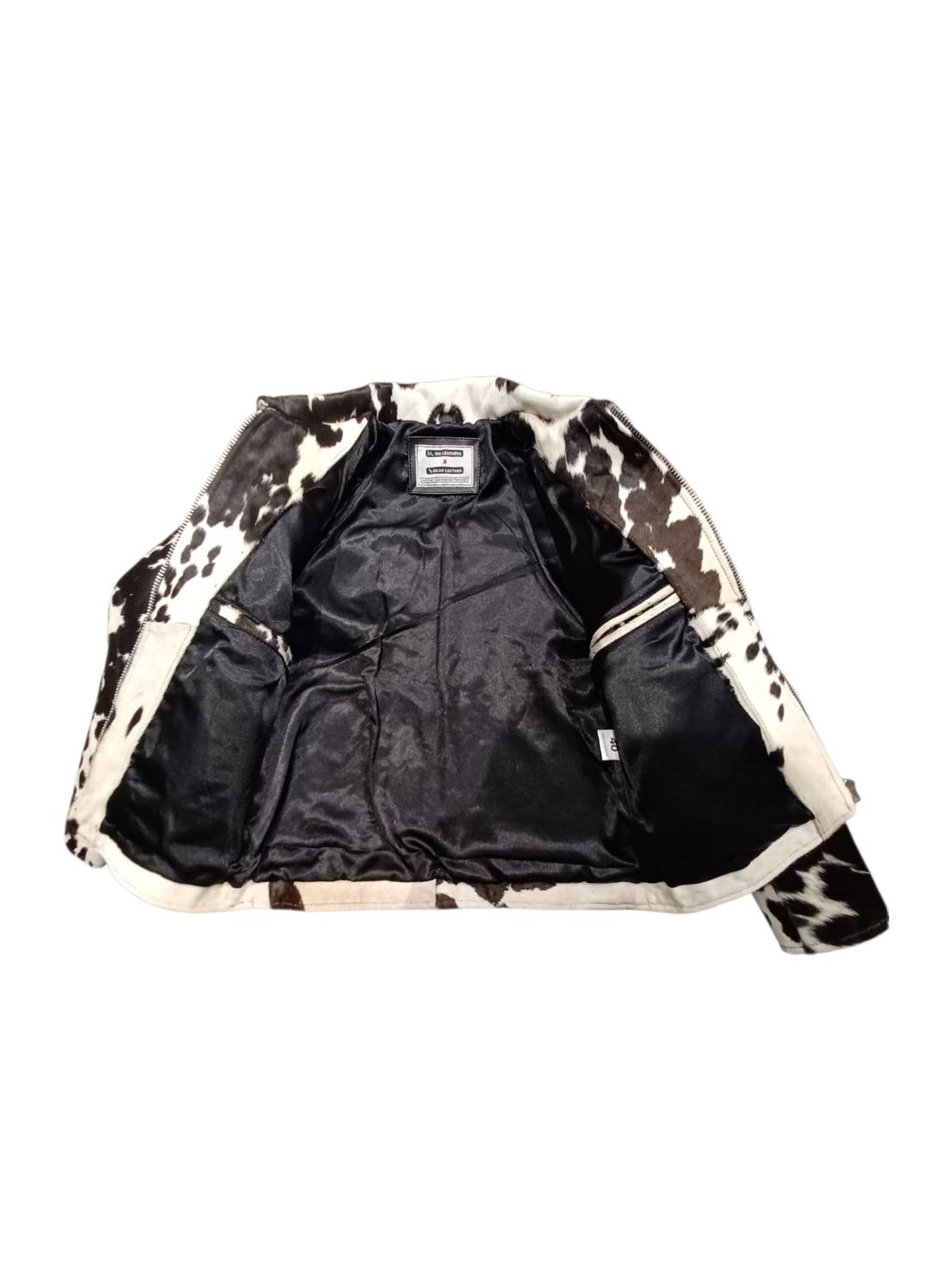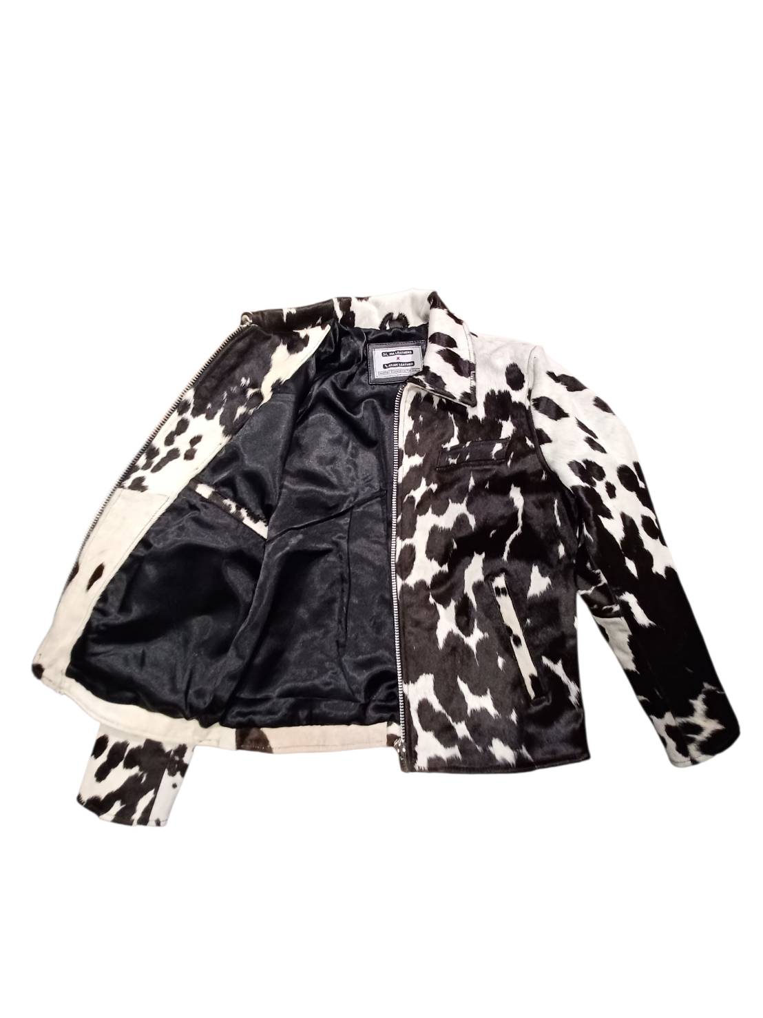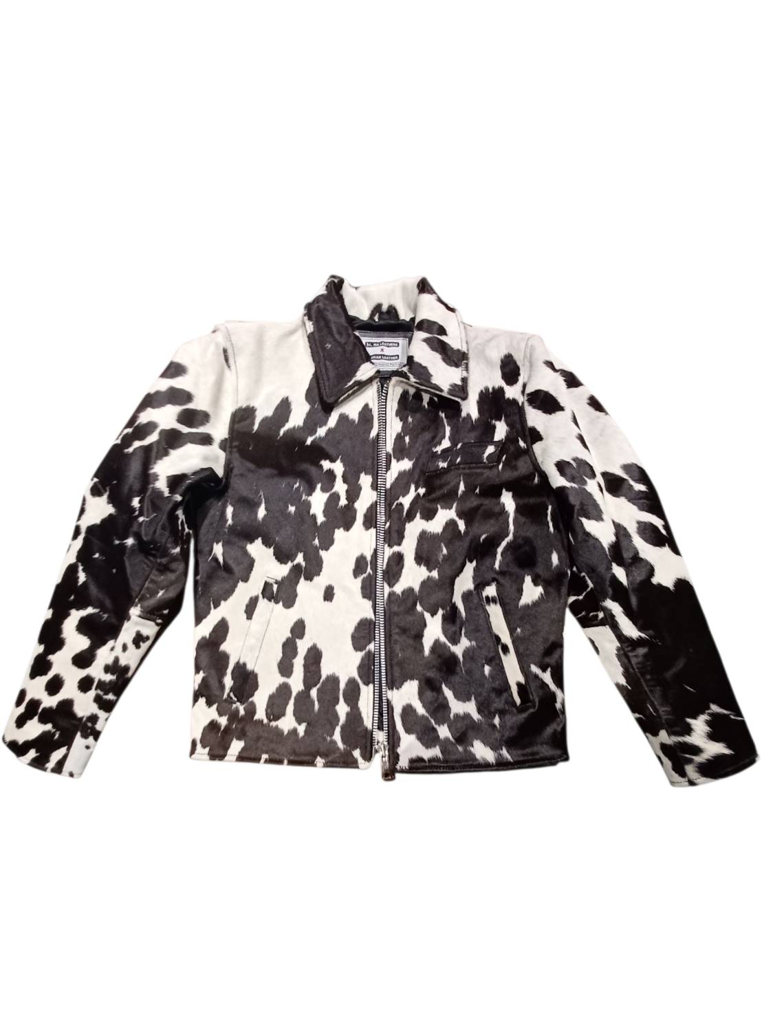 大胆なモノトーンの毛付き牛革(ヘアオンレザー)を贅沢に使用した、唯一無二のレザージャケット。