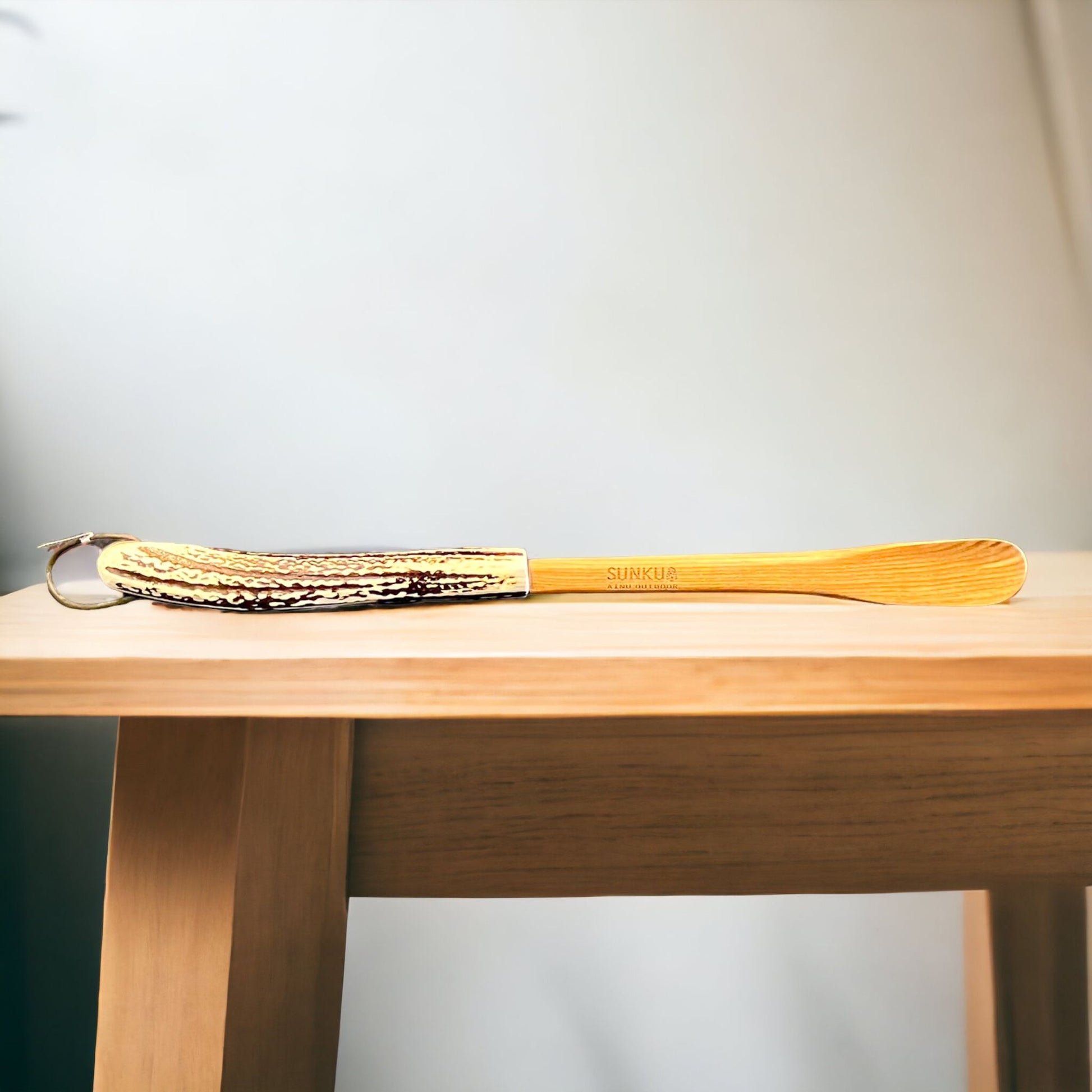 エゾシカの角と、北海道産のエンジュの木を使用した北海道ならではの靴ベラです。