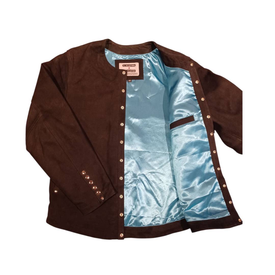 上質な牛革スエードを贅沢に使用し、しっとりとした質感と落ち着いた風合いが魅力のジャケットです。