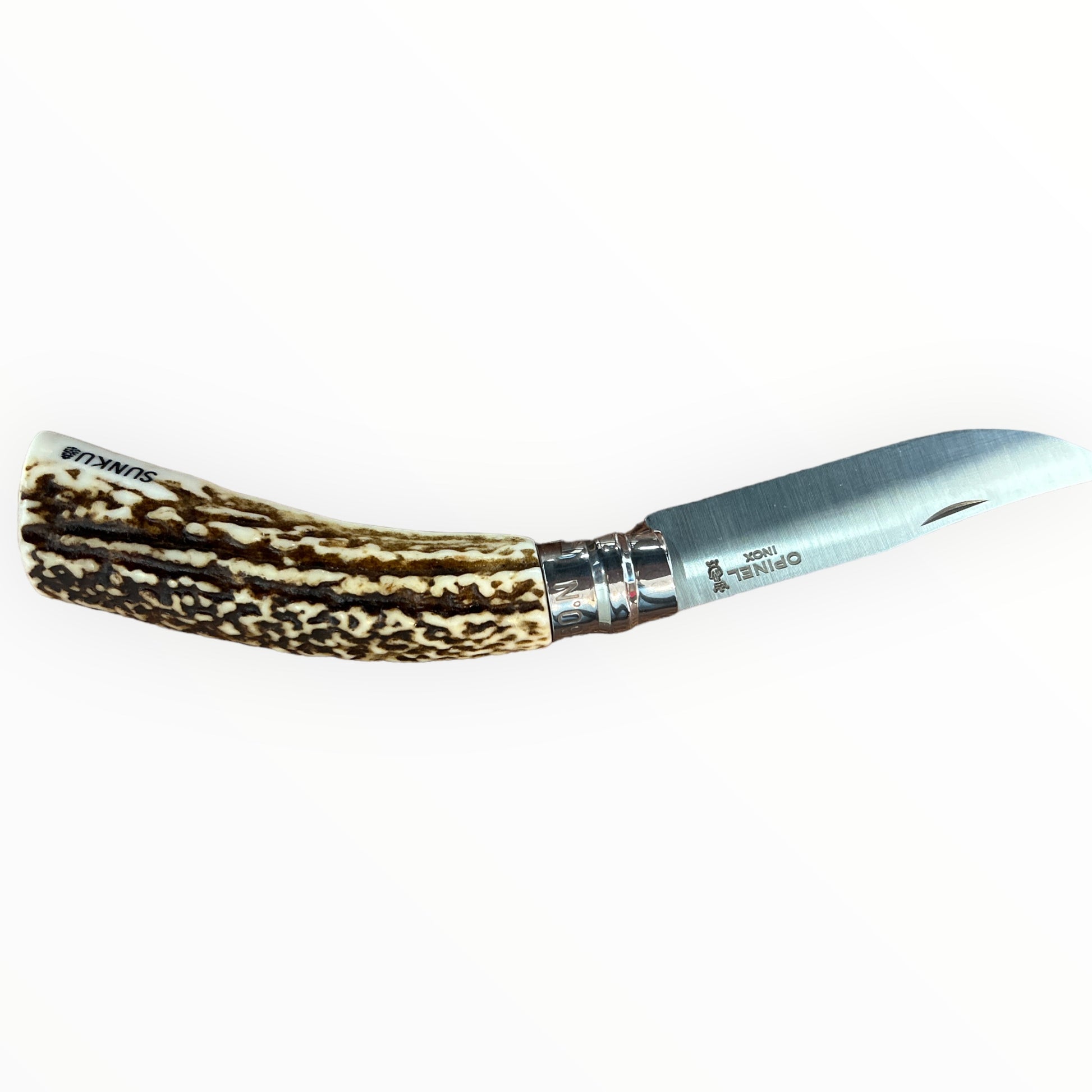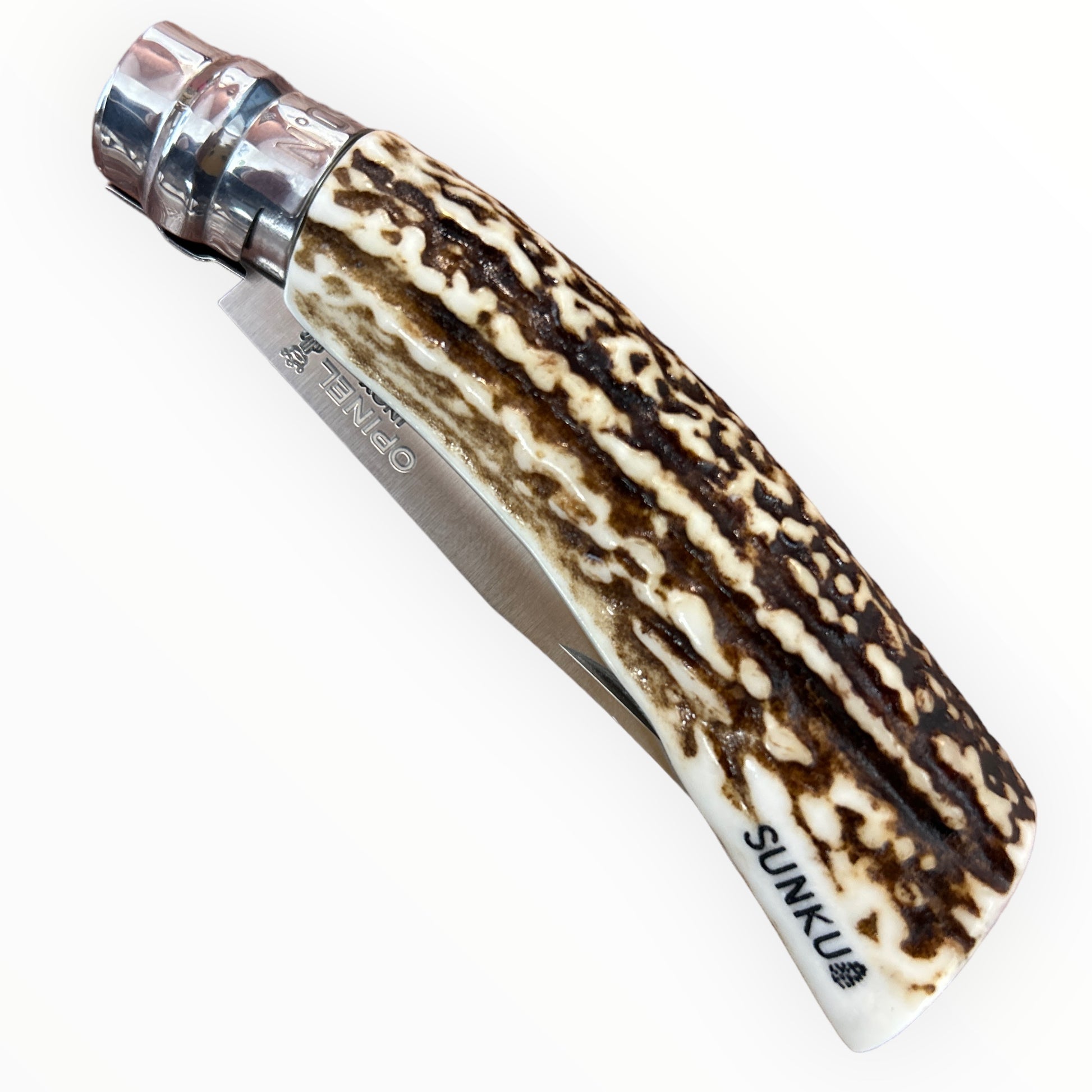 Ainuoutdoor SUNKUとNOBORI outdoorのコラボレーションにより、エゾシカの喧嘩角を柄にしたOPINEL No9ナイフが完成しました。
